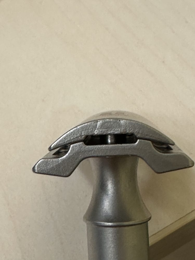 Fin dal primo contatto si percepisce la cura costruttiva: il manico tornito in acciaio inox 1.4305 assicura stabilità, mentre la testina in acciaio 316L satinato protegge la lama dagli agenti corrosivi e garantisce una durata potenzialmente illimitata. La zigrinatura profonda consente una presa ferma anche con dita umide di schiuma. Il nome “HD” – Heavy Duty – non è casuale: con un peso di 79 grammi (225 grammi comprensivo di confezione regalo) il Merkur 34 Special Edition offre la massa ideale per far scorrere la lama con minima pressione, riducendo irritazioni e tagli accidentali.